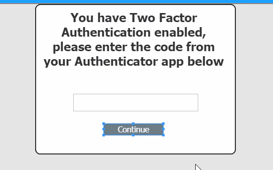 On the code behind the Continue button on the popup we find our third and final new 2FA function