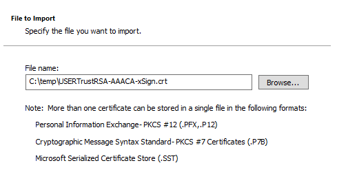 And make sure that it installs them in the Intermediate Certification Authorities store