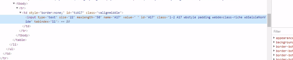 Well it just so happens that one of the states for WEBDEV controls is Input Not Empty. That sounds like a good place to look next! Before we do, you might be wondering why, the control is getting Input Not Empty, especially for License Count which obviously isn’t empty and Billing Address, which works correctly, appears to be empty but doesn’t get the class. Well I have no earthly clue, and one of the things I have learned from experience is sometimes I don’t need to know why, I just need to solve the problem, so moving on to problem solving.