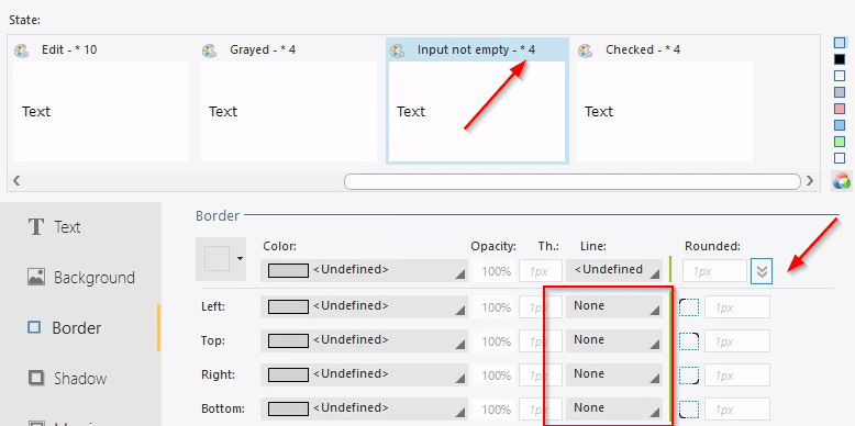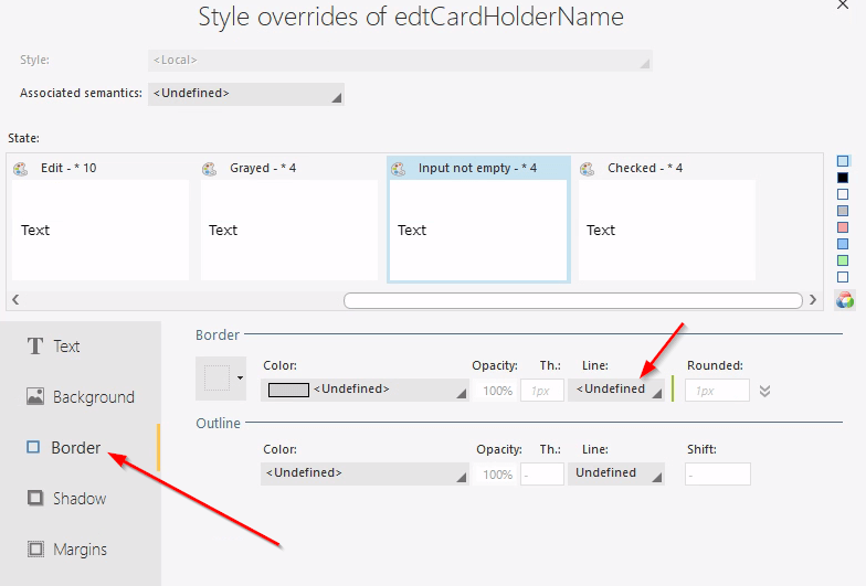 And now we see that they are all set to None, meaning no border line, which is exactly what is happening to us. I feel this is a bug, if there are overrides for the individual sides, then the display for the entire border should reflect that somehow, and if all 4 sides have the same override, then the display for the entire border should match. However, I do not know if PCSOFT considers this a bug or feature. BTW also note that the number of overrides for this state is showing 4, which is our 4 overrides for Line for each side.