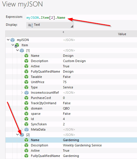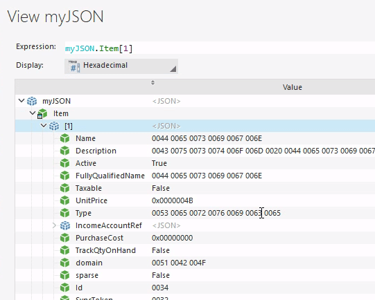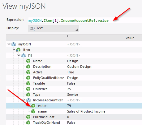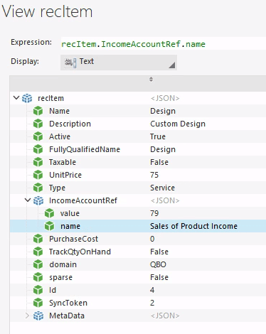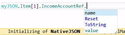 For example IncomeAccountRef is a complex variable that contains 2 fields of its own (name and value). But the debugger shows exactly how we could address those fields as well.
