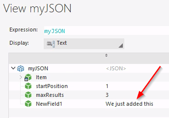 Choosing JSON from the Display combo shows us the variable in its native JSON text format