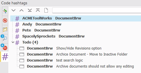 Already a great feature, PCSOFT could have stopped there, but they continued on! They also gave us a complete new pane we can add to the IDE for the management of code hashtags.