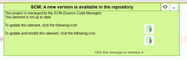 #4 He opens the project on his machine, and this is the key step, he happened to already have the ifrmProducts window open the last time he had the product open. The IDE detects the available update and pops up a screen to give him the option to retrieve that update