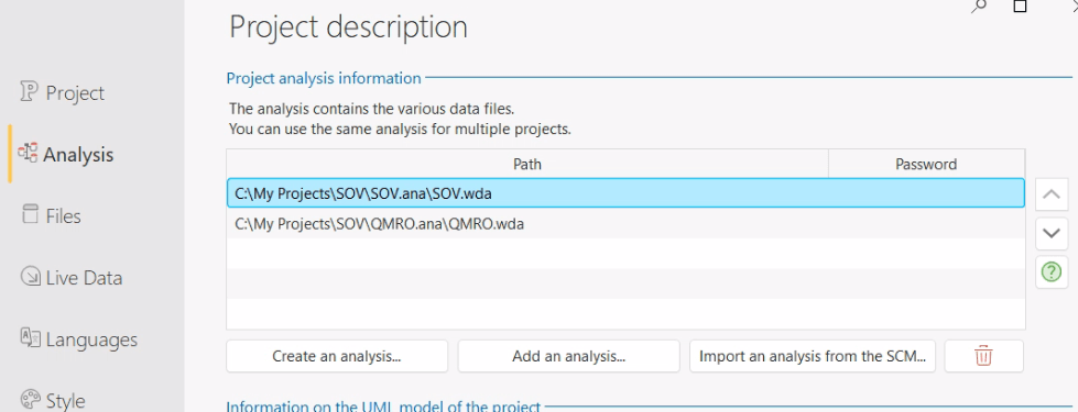 First in the Project Description that Analysis area has now become a table, which allows us to add more than one Analysis to the project, or more importantly share it via the SCM!