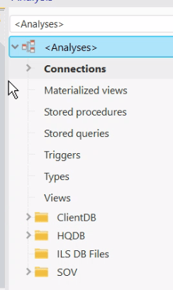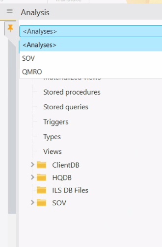But also of interest, notice if you select Analyses from that combo, what you see is actually a merged representation of both Analyses. The SOV folder is coming from the SOV Analysis, while the other folders are from the core Analysis (QMRO).