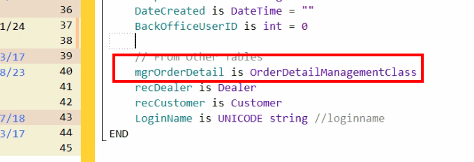 Let’s go with a typical example, a Parent/Child relationship between OrderHeader and OrderDetail. First, the header record class so that it includes the child manager class. We won’t do the entire Child in Memory management stuff in this article, that is covered here, if you are interested.