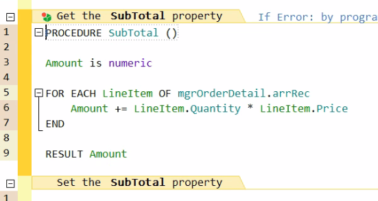 That is it. And because this is a property, it can be referenced like any other variable, including being bound to a screen control. For example, if you want to show the subtotal on the order form