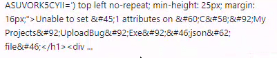 It is hard to read because of all the HTML formatting but it says: Unable to upload. An unexpected error occurred while uploading one of the files. Make sure the files to upload are not too large. (Then a bunch of html coding) and then Unable to set attributes on (and then a portion of the file name)