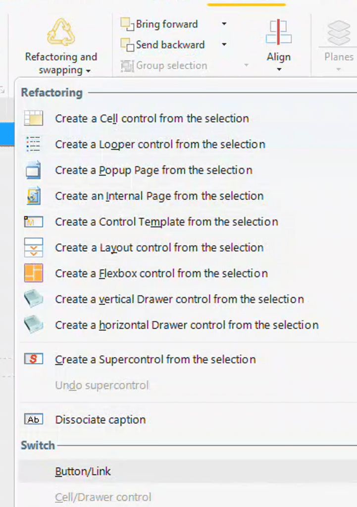 A bug in the Link control that causes issues with captions containing accented characters can be resolved by changing the links to buttons. This workaround involves selecting the Link Control, choosing “Refactoring and swapping” on the Modification tab, and selecting Button/Link from the switch section. Additionally, using buttons instead of links provides more control over design and functionality, including the ability to use HTML captions and Icon Fonts.