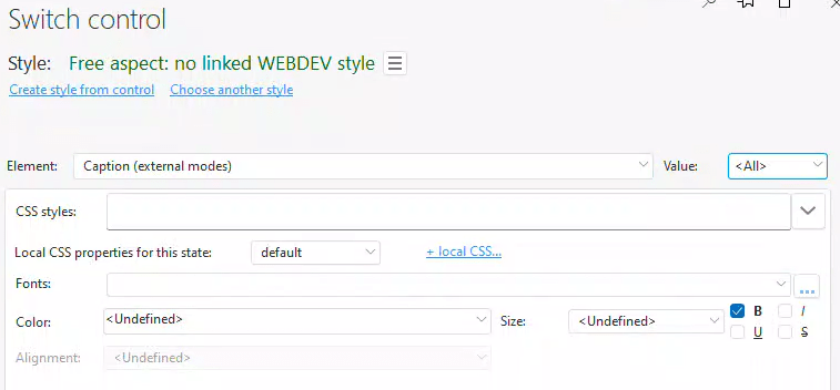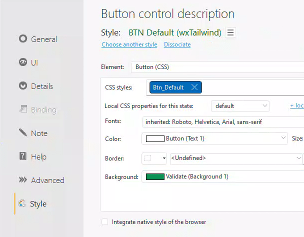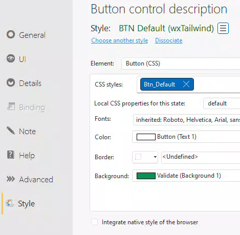 Now, you can create your style by clicking the “Create style from control” link. Don’t forget to copy your Tailwind.wss file into the IDE Skin folder, and update the skin in any projects that are using your Skin.