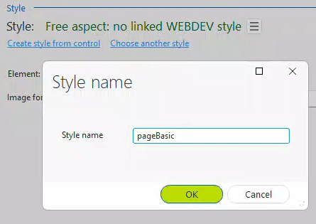 Finally, you can now click on the “Create style from control” link and name it “pageBasic”.