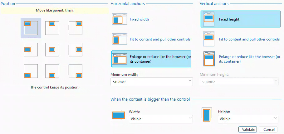 We also configure the anchoring to expand both horizontally and vertically with the browser.