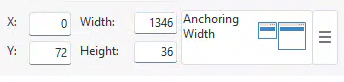 The menu bar is positioned at 0,72 and has dimensions of 1346 x 36. Its anchoring is the same as that of cellHeader.