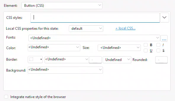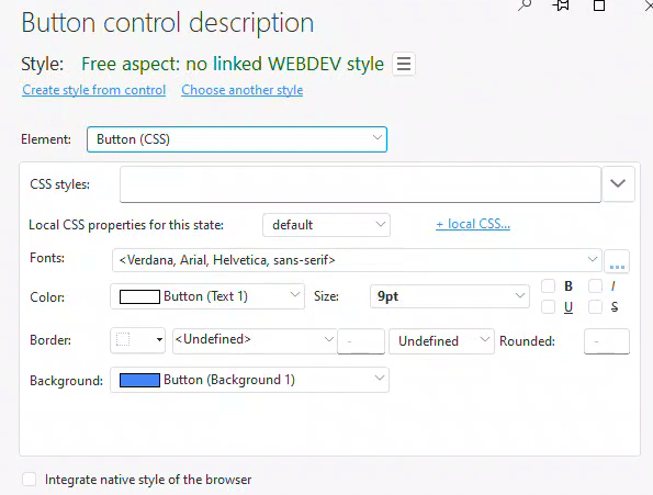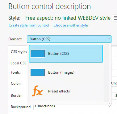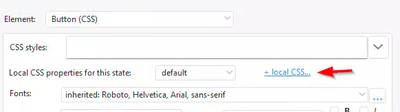 For the Button (CSS) element in WEBDEV style, most of the necessary adjustments are only available through the +local CSS link. Therefore, adjusting the basic settings on the primary screen isn’t very beneficial. So click on the +local CSS link to proceed.