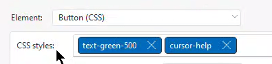 By using just two classes, “text-green-500” and “cursor-help”, along with adding tooltip text, I can create on-screen help tips.