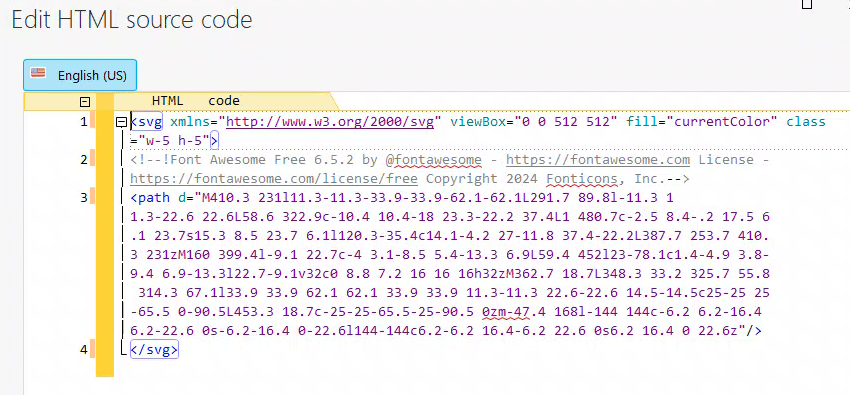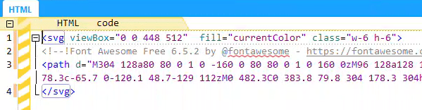 💡 Take note of the comment line in the SVG code. This comment is a requirement from Font Awesome for the use of their free icons, so ensure not to remove it!