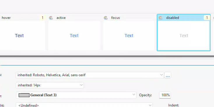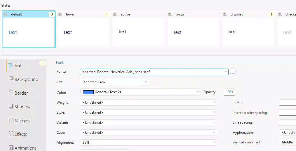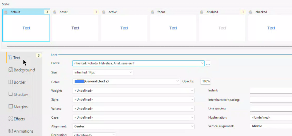 On the ‘Default State Text’ tab, I set the text color to light blue and aligned it to be centered horizontally and in the middle vertically.