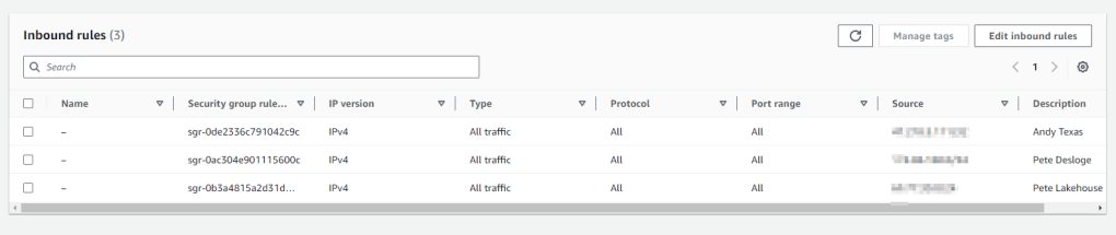 This group gives the developers access to all ports. You could limit this to specific ports and get as detailed as you desired but for our purposes we are comfortable with allow all traffic from our IPs.