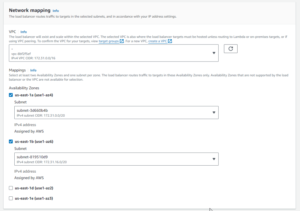 When you select a zone it then wants you to select a subnet, since we have created any custom subnets it selects the default subnets for us.