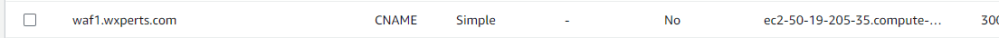 Since we have created the ALB yet we can’t add the WAF entry but we can add the WAF1 entry. We will add this as CNAME entry point the the Public DNS name of our instance