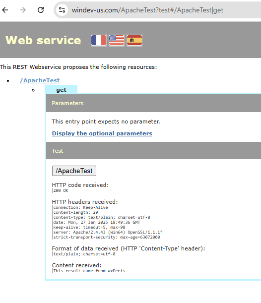 That is because when we published the second webservice, it replaced the original <Files ApacheTest> section that was for wxDemo with the one for WinDev US, because it is in the global section it doesn’t know it isn’t for a different webservice.