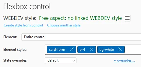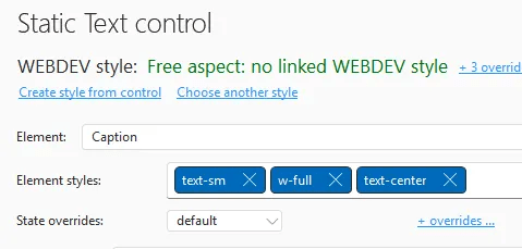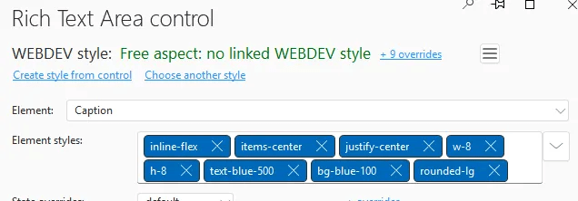 Styling is a crucial aspect of this control. As covered in the articles referenced above, when using Tailwind CSS, I set all WEBDEV styling options to undefined. Instead, we implement several Tailwind classes to handle the styling.