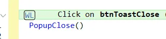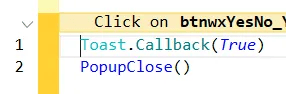 Here’s a similar example called from browser code. Note that we must use the wxToastDisplay procedure and pass the style as the number 3 rather than Toast.Err