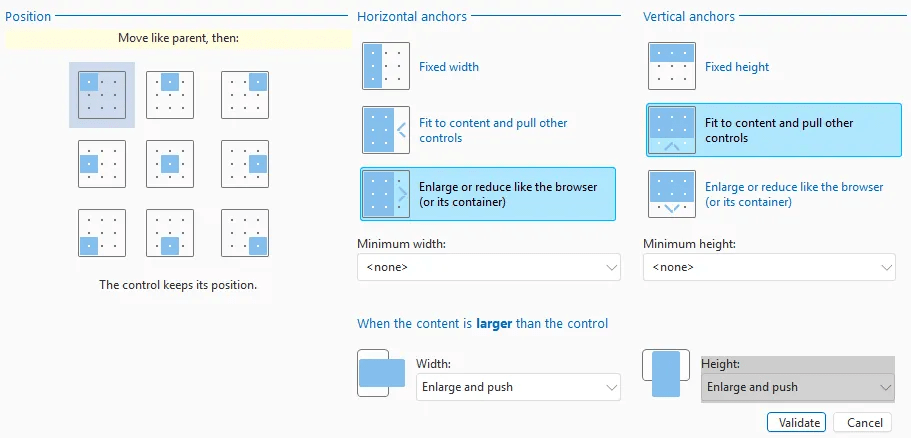 Anchoring is set to enlarge like the container horizontally, and fit/pull vertically.