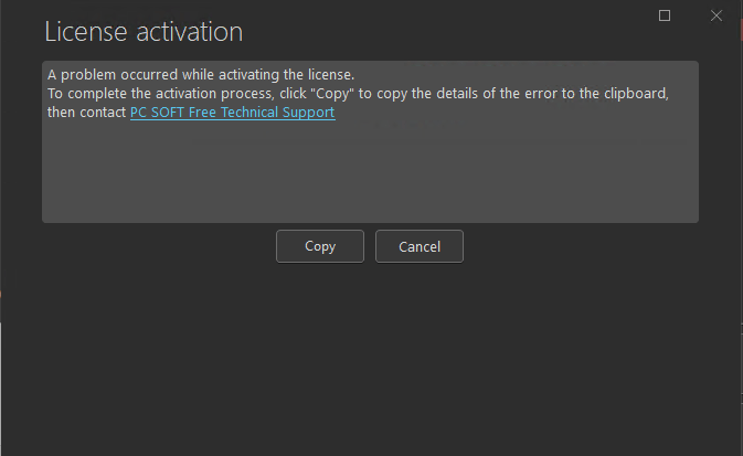 ! Une erreur interne est survenue lors de l'activation de la licence :! <empreinte_mb() : empty>! Licence non activée.