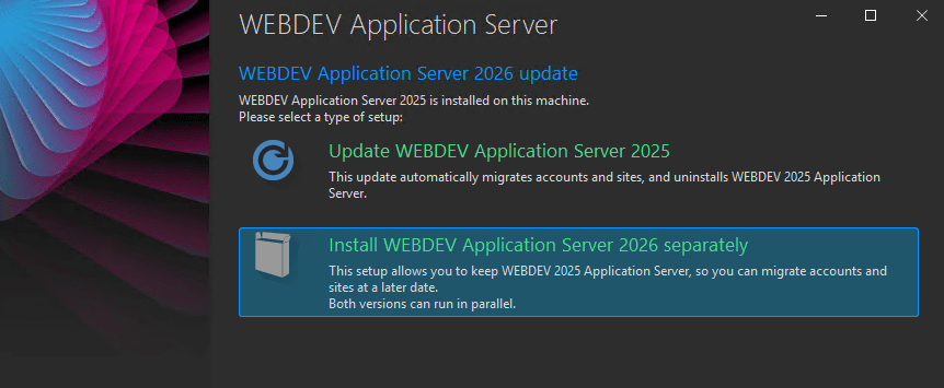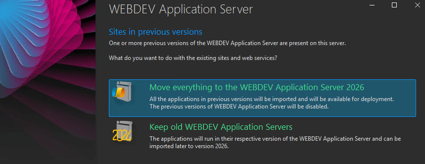 After agreeing to the license, we get the option to move everything to the WAS 2026, so even though we choose separate install we still get the option to upgrade.