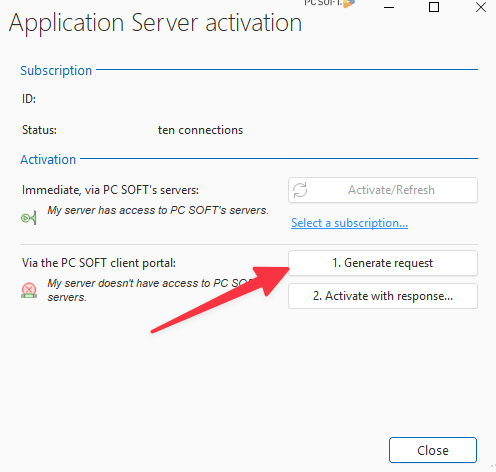 When you click activate, you will get this screen, click the Generate request button.