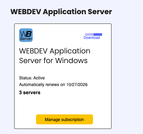 The first server I did this on the subscription screen did not update, but when I did it for the second one it did, so if your screen doesn’t update just back out of it and then go back into manage subscriptions. But eventually you should see your new server in the list, with a link with the french word for download, because PCSOFT is secreting trying to force us to learn French :-). Click that and download the file
